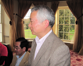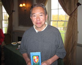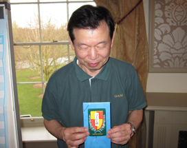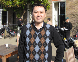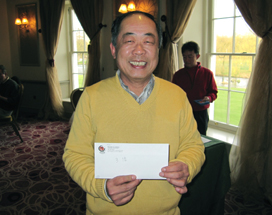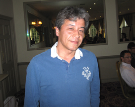 4月に帰国される北村さん。例会ではさほどの成績を残されていませんが(失礼!)、忘年会や送別会など、お酒のある席ではいつも存在感たっぷりでした(もっと失礼!)。お元気で。 |