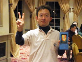今年最後の例会を制したのはミセス内山さん。グロス85、7アンダー。まさにブッチ切りの優勝でした。かつての強さが戻ってきた感じです。来年は要注意。 2位にはT鈴木さん、そして3位には前回優勝の野上さんが食い込みました。そしてそのままこのお二人が最後の直線で前を行く馬たちを軒並みかわし鈴木さんが年間優勝、そして野上さんが準優勝に輝きました。 二人とも、9月、11月と、二回の例会でポイントを荒稼ぎ。コツコツポイントを溜めてきた人たちをサックリ抜いて行くという、人としてどうなんだ、という勝ちっぷりで多くの人々の恨みを買うこととなりました。罰として、お二人には忘年会の幹事をきっちりやっていただきましょう!