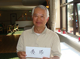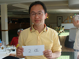 入賞かブービーか、といった破滅的ゴルフをされている印象のある柿崎さん。今回も見事3位に食い込んでポイントを稼がれました。ハンディもちょびっと削られ、次戦は坂道をさらに駆け上がるか、それとも奈落か。 |