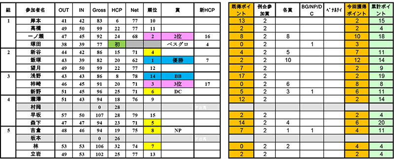 ほらねー。だから毎回警鐘を鳴らしていたでしょ。一ノ瀬さんは3月例会では3位入賞。そして今回は準優勝。静かーにプレーされていますが、実は年間優勝を腰トントン、じゃなくて虎視眈眈と狙っている方です。要注意。