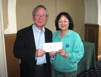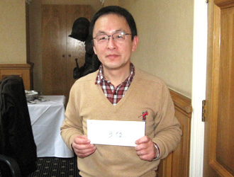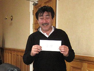 昨年11月の例会でピカデリー会デビューを果たした宮本さん。2回目にして早くも賞をゲットされました。ただしブービー賞。これで3連続幹事をつとめられて来た早坂さんも