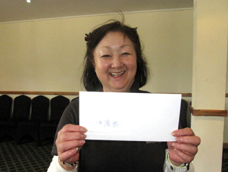 10アンダーでぶっちぎり優勝された宮本さん。入会時に事務局の某氏が「入会拒否しよっかなー」なんてイジメたため、発奮されたようです。褒め殺しにした方が良かったかもしれません。しかしハンディは一気に28から13へ。これもいじめか!