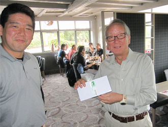 めったに参加されない高内さんですが、久しぶりに参加されたと思ったら私手島と激しいブービー争いを展開。わずか1打差で見事、ブービー賞をゲットされました。11月は当日幹事、よろしくお願いします。