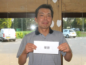 今年夏ごろに入会された長谷さんが早くも優勝してしまいました。遠くて優勝のご挨拶がよく聞こえませんでしたがきっと「パートナーに恵まれて」とおっしゃっていたのでしょう。浅野、落合、坂本諸氏か。あんまり恵まれてませんでしたね。