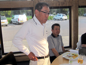 今回新しく仲間になられた鶴田さん(左)と米澤さん。なぜか森内会長が今回はとても寛大でハンディは二人そろって20になりました。二人が会長にそっと茶封筒を渡しているところを目撃した方は事務局までお知らせください。いずれにしても来年早めに潰しましょう。