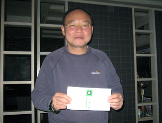 12月例会で優勝された川口さん。しかしご本人は出張のためプレーを終えてすぐに空港へ。優勝者挨拶なしになっちゃいました。写真も撮れなかったので5月、初参加時の半袖写真載っけちゃう。
