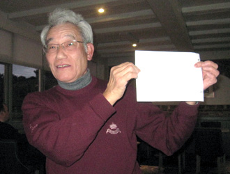 落合さん帰国で年間優勝が転がり込んできた一ノ瀬さん。クラブチャンピオンとしてのスピーチの場を差し上げましたが最終戦でいかにパットが入らなかったかという暗い話に終始。もっと明るい話をしろ!と私に脅されていました。忘年会幹事、ご苦労様でございます。