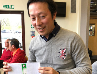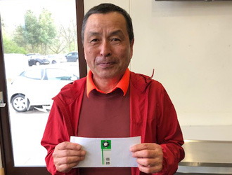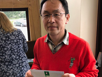 3月の例会でグロス82、ネット62でまわり、ぶっち切り優勝した米沢さん。ハンディは7となり、シナリオ通り絵にかいたような転落劇。救済ルールにより次回よりハンディは10に。再び這い上がる日は来るのか。