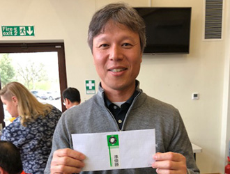 昨年11月の最終戦で優勝され、2月例会の幹事をされたばかりの川口さんが快進撃アゲイン。猛追する三木さんを1打差でかわして見事、優勝です。優勝の常連? ブービー常連の方、見習いましょう。誰? 知らない!