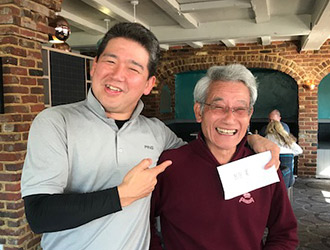 確か先月2位になられてもの凄く褒めちぎった記憶があるのですが、今回は下から2位の山本さん。海女さんのように沈んだり浮かんだりで忙しい日々です。ブービーとメーカーの2ショットですが、まるで優勝と準優勝のように陽気なお二人です。立ち位置に気づいていないのでしょうか。