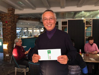 日本クラブや他の行事と重なってもピカデリー会を優先する花岡さん。そういう真摯な気持ちをゴルフの神様が黙って見過ごすはずがない。準優勝されました。まるで神様の手助けがあったような言い方ですね。実力で2位です。
