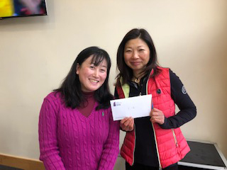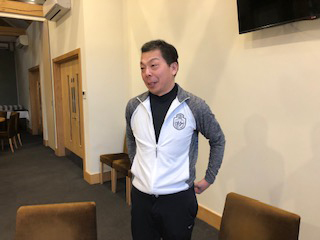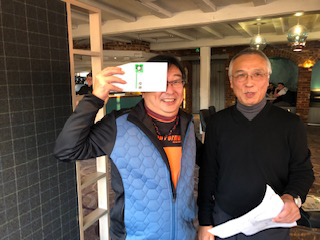 昨年チャンピオンの平田さんと同ネットとなり、上がり4ホールの勝負で3位に入賞した丹野さん。えらい! プレー後、ミニスカ出張者の送迎だとかで空港に向かわれたので前回の写真を使っています。