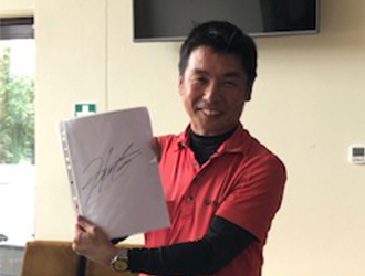 佐々木さん入会依頼、ブービー賞争いが混とんとしてしまい、なかなか獲れない賞になったとお嘆きの橋本さん。時々山本さんも絡んでくるし。今回は斎藤さんがゲットした松山英樹のサインをもらって上機嫌のブービーメーカーでした。