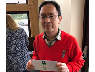 素振りをしない男前ゴルフでお馴染みの河端さんが3等賞です。今年も男前ゴルフを継続するようですが、黄色ティーでは勝てないと踏んで今年は赤からです。平田勝美の3連覇を阻止する有力候補です。