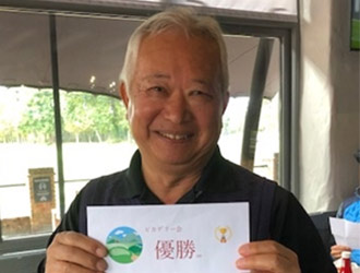そんな中、半そでにベストの軽装で登場した飯塚さん、今春引退されゴルフ三昧の生活になられ、なんと5アンダーのぶっちぎり優勝でした。