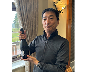 12番の長い打ち下ろしショートでホールインワンを達成した幹事の松田さん。3度目の快挙だそうです。おめでとうございまーす。