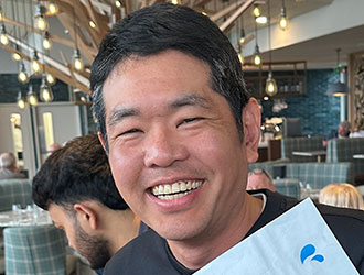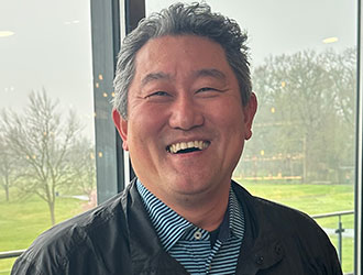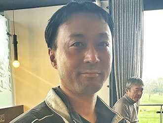 いつも飄々とした表情でプレーする太田さん。白衣着て怪しげな色の液体ポコポコ混ぜ合わせていそうな雰囲気だけど実はゴルフ、上手なの。