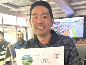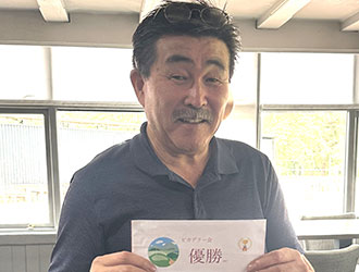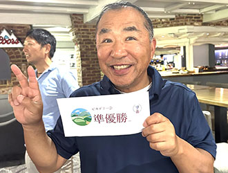 皆様にゴルフを楽しんでいただけるよう「陰の男」に徹してきた事務局の手島さん。しかし鷹も能を隠し切れず優勝。遂に日の当たる場所に出てしまいました。馬券も総どりウッシッシ。